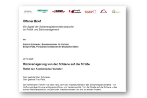 Vor dem Hintergrund der besonders prekären Situation in unserer Branche haben wir uns gemeinsam mit anderen Intermodal-Anbietern und Verbänden mit einem Offenen Brief an den Bundesminister für Verkehr, Patrick Schnieder, und die neue Vorstandsvorsitzende der Deutschen Bahn, Evelyn Palla, gewandt. Mehr erfahren